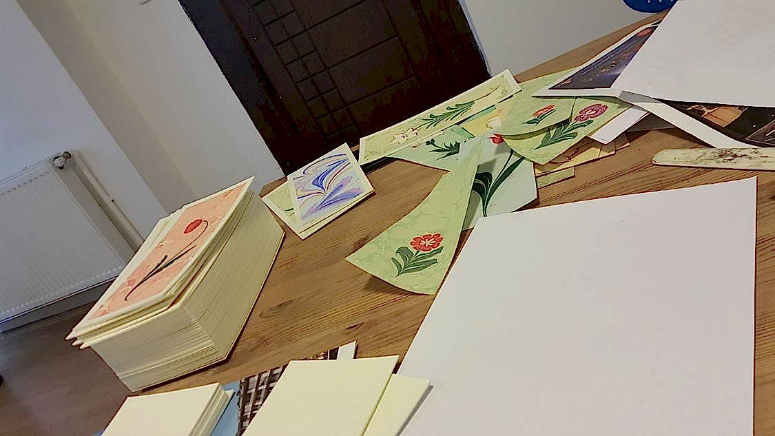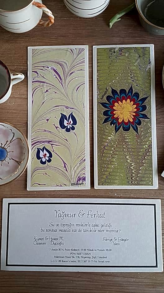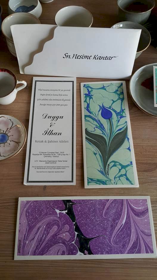 Sonsuza dek saklanacak sanat eseri davetiyeler� Ebru sanat�n�n do�as� gere�i her bir ebrunun tek tek haz�rlanmas� her bir davetiyenizin de tek olmas�n� sa�layacak.�
